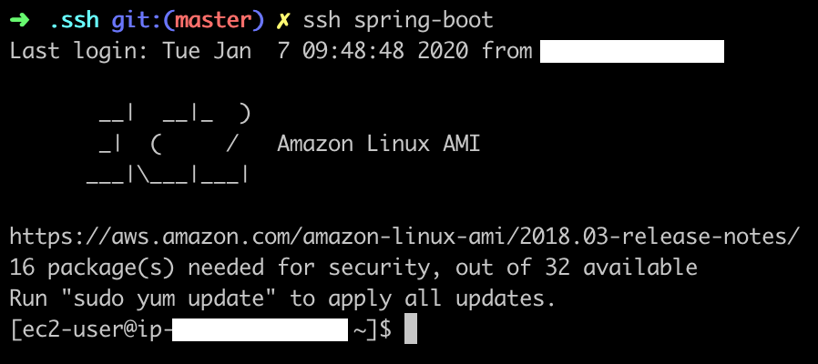 ssh ec2-user@xxx.xxx.xxx.xxx -i spring-boot.pem
