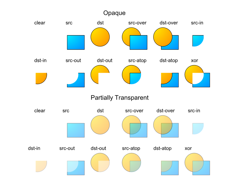 위의 예시에서는 색을 일부러 #55ff0000으로 지정해서 반투명하게 만들었다. 따라서 ColorFilter가 적용될 때 위의 그림에서 Partially Transparent 아래의 16가지 모드 중 하나로 지정되게 된다.