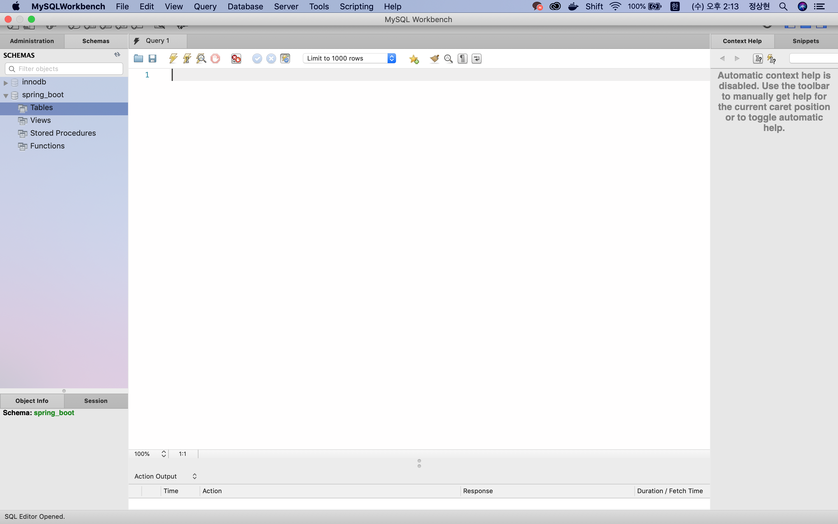 이제 로컬에서 데이터베이스를 사용하기 위해 Workbench를 사용해보자. MySQL의 대표적인 클라이언트로는 Workbench, SQLyog, Sequel Pro, DataGrip 등이 있다. 참고로 인텔리제이에서 Database 플로그인을 설치해서 사용하는 방법도 있다.