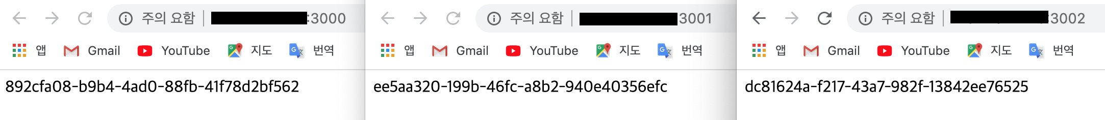 각각의 서버에 들어가 보면 서로 다른 ID값이 출력된다.
