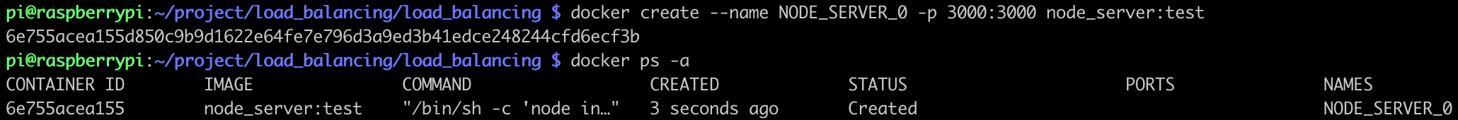 docker create --name NODE_SERVER_0 -p 3000:3000 node_server:test