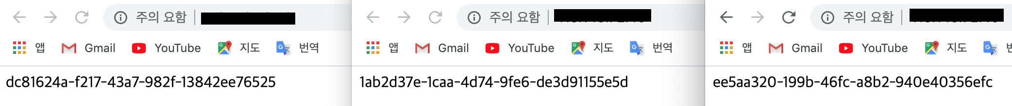각각의 서버에 들어가 보면 서로 다른 ID값이 출력된다.